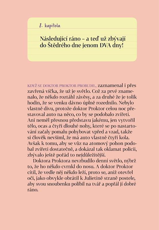 Víte, co potřebujete ke zničení Vánoc? Stačí k tomu jeden chamtivý obchodník, který k nim skoupí veškerá práva. A teď je nikdo nesmí slavit. Tedy pokud nejdřív neutratí slušnou sumičku v jeho obchodech. Líza, Bulík a doktor Proktor to tak nenechají. Před tím, než ale Vánoce zachrání, se musí vypořádat i s vánočním skřítkem, který nadělování dárků dávno pověsil na hřebík. Do Štědrého dne přitom zbývá jen pár dní a čas letí jako splašený…