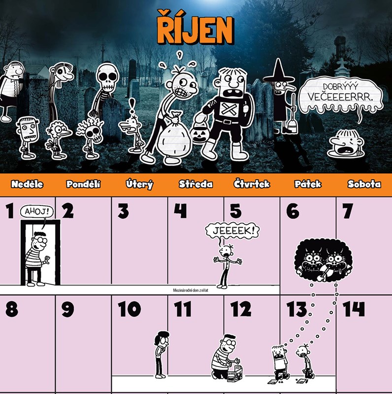 V jedinečném nástěnném kalendáři s klasickými kresbami Jeffa Kinneyho a barevnými citáty najdete vše...