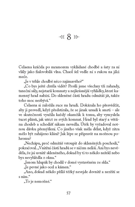 V temných a špinavých solných dolech Endovieru si doživotní trest odpykává osmnáctiletá dívka. Celaene byla od dětství trénovaná k jednomu jedinému úkolu – stát se tím nejlepším zabijákem na světě, rychlým, tichým, neodhalitelným a všehoschopným. Ale udělala chybu. Nechala se chytit. Pak však dostala druhou šanci a uvědomila si, že je jen na ní, jak s ní naloží.