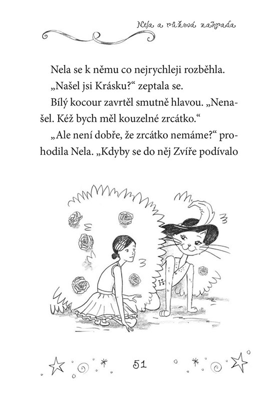 Nelu opět odnesou baletní střevíčky do pohádkové Země kouzel, tentokrát do překrásné růžové zahrady. Nikde však nevidí svého spolehlivého průvodce, Bílého kocoura. Když se otočí, spatří muže, jak trhá bílou růži. Z úkrytu ho přitom pozoruje ohavné zvíře. Nela pochopí, že se ocitla v baletní pohádce Kráska a zvíře, nemůže se ale zbavit pocitu, že je něco špatně… Podaří se i tentokrát Nele zachránit pohádkovou říši a svého věrného přítele?