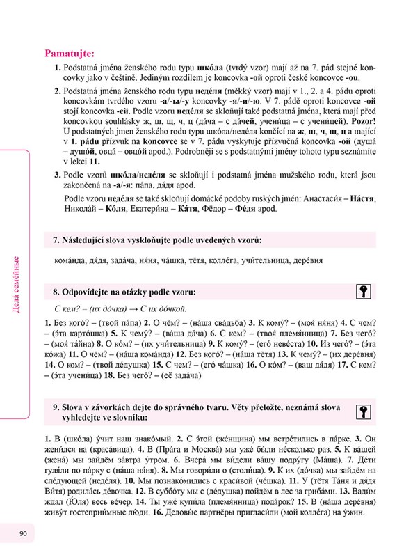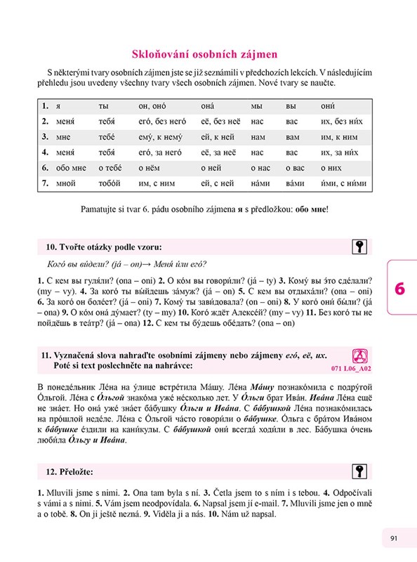 • různé druhy cvičení sloužící k důkladnému prověření a upevnění nové i dříve probrané gramatiky