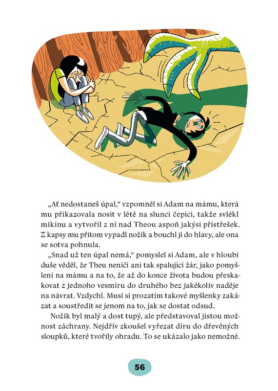 Když se Adam jednoho dne vrátí domů, všechno je najednou jinak. Auta jezdí vlevo, semafory jsou obráceně a v jeho posteli leží… úplně cizí kluk! To je ale jen začátek jeho dobrodružství, ve kterém se podívá mezi dinosaury, bojové roboty, obří hmyz nebo třeba do vesmíru, kde nefunguje elektřina. Společně s ním putuje dívka Thea, která potřebuje sehnat lék pro svou zraněnou maminku. Podaří se dětem včas najít cestu zpět domů?
