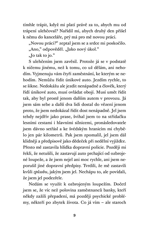 Sedmdesátá léta v Oslu. Olav Johansen nedokáže jezdit autem pomalu, je měkký jako máslo, příliš snadno se zamilovává, jestliže se rozčilí, ztrácí hlavu a je mizerný v matematice. Něco málo přečetl, ale moc toho neví a rozhodně nemá takové znalosti, které by byly k něčemu užitečné. A píše pomaleji, než roste stalaktit. K čemu se tedy hodí? Je skvělý zabiják. Nemusí přitom jezdit autem, zabíjí většinou lidi, kteří si to zasluhují, a nejsou to žádné složité počty. Alespoň prozatím nebyly. Dokud od šéfa nedostal nový úkol: vyřídit jeho manželku.