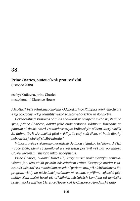 Věděli jste, že Charles, Dianin nevěrný manžel, byl nějakou dobu Scotland Yardem podezříván, že hrál zásadní roli v její tragické smrti? Že královna určila za svého nástupce svého vnuka Williama? Že Kate úmyslně svrhla Meghan z piedestalu tím, že infiltrovala svého komplice do Harryho nejbližšího kruhu? Že svazek mezi Williamem a Kate byl „domluvený“?