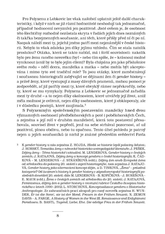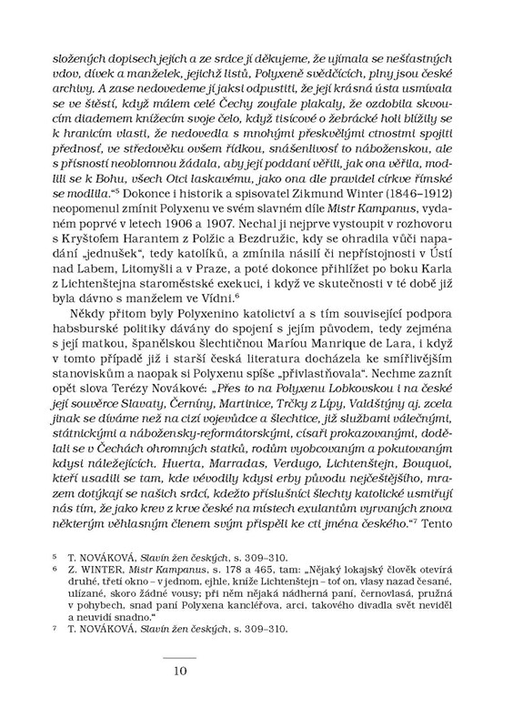 Jedna z „žen české renesance“, dcera nejvyššího kancléře Českého království Vratislava z Pernštejna a španělské dámy Marie Manrique de Lara, manželka nejprve jihočeského magnáta Viléma z Rožmberka, poté vůdčí postavy české katolické šlechty Zdeňka Vojtěcha Popela z Lobkovic, je jakýmsi prototypem šlechtičny sklonku renesance a nástupu nové, barokní doby. Polyxena z Lobkovic (1566–1642) v monografii historičky Marie Ryantové vystupuje jak v roli správkyně svých statků, která uměla v případě potřeby sama úspěšně hospodařit, tak v roli ženy politicky aktivní. Asi nejvíce se zapsala do obecného povědomí tím, že po pražské defenestraci v roce 1618 poskytla ve svém domě útočiště svrženým královským místodržícím Slavatovi a Martinicovi. Kniha ukazuje i další z důležitých tváří Polyxeny, její katolickou zbožnost, jejíž odvrácenou stranou bylo nesmlouvavé zasahování proti nekatolíkům na vlastních panstvích po porážce stavovského povstání.