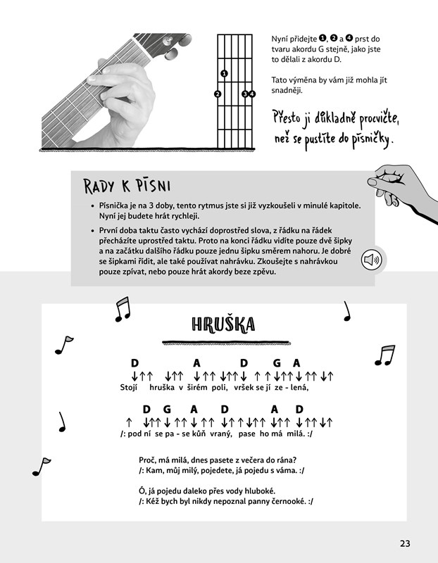 Všechny lekce jsou doplněny zvukovými ukázkami, které vám vaše pilné cvičení usnadní, dostupnými na www.albatrosmedia.cz po zadání názvu této knihy do vyhledávacího pole je naleznete v sekci Ke stažení. Kromě toho je kniha plná nejen názorných obrázků a fotografií, ale také vtipných ilustrací, které pro vás vytvořil ilustrátor a hudebník Aleš Čuma. Věřím, že vás moje učebnice obohatí, pobaví a přinese do vašich životů mnoho muziky.