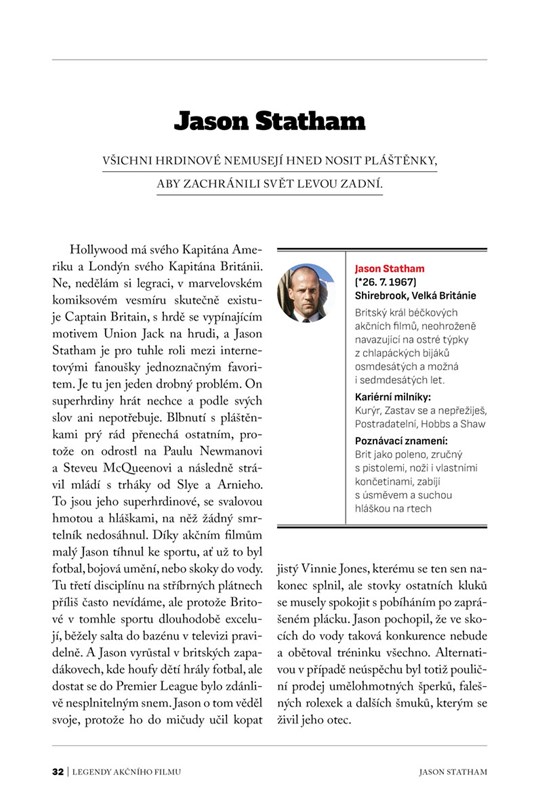 Autoři úspěšných publikací Továrna na sny, Encyklopedie akčního filmu, Encyklopedie komiksového filmu, Encyklopedie fantasy filmu a Encyklopedie hororového filmu, které vyšly v našem nakladatelství a jež každý správný cinefil přečetl jedním dechem, se vracejí s tím nejsilnějším kalibrem – AKČNÍMI HRDINY! Tváří se drsně, přeskakují z auta na auto v plné rychlosti, nemilosrdně kosí nepřátele, letadla zastavují holýma rukama a líbat umí tak, že nejedna křehká blondýnka jde okamžitě do kolen... Tak to jsou oni! Arnold Schwarzenegger, Bruce Willis, Sly, Bruce Lee, John Wayne a mnozí další. Co, kde, za kolik a s kým natočili? Co při tom řekli a jak se na koho podívali? Dozvíte se právě teď a tady...