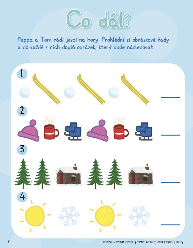 Čti si, kresli, hádej, lušti, počítej a tvoř společně s Peppou a jejími kamarády! V téhle milé knížce najdeš tři nové pohádky, spoustu zábavných úkolů, snadné návody na výrobu veselých sněhuláků, slunečnicového metru, puzzle přáníčka a roztomilého přání s ptáčkem, kvízy a hry. S Peppou se totiž nikdo nenudí!