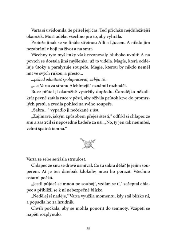 Varta se do klání zapojit nechtěla. Osud jí však zavede do cesty tajemného cizince, a všechno se změní. Může dívka drzému a ironickému mágovi věřit? Chce jí opravdu pomoc, nebo sleduje jenom vlastní cíle?