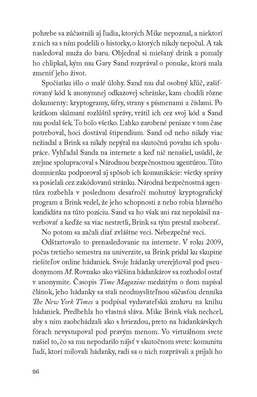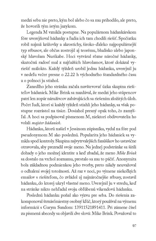 Celý svet predstavuje hádanku a Mike Brink – slávny tvorca hádaniek – rozumie jej vzorcom ako málokto. Kedysi nádejná hviezda amerického futbalu utrpela traumatické poranenie mozgu spôsobujúce zriedkavý zdravotný stav: náhle nadobudnutý syndróm učenca. Brink po nehode získal výnimočnú schopnosť riešiť hádanky tak, ako to bežní ľudia nedokážu. Zároveň však stratil schopnosť nadväzovať kontakty s inými ľuďmi a cíti sa osamelo.