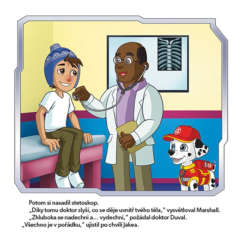 Neohrožená štěňata z Tlapkové patroly spěchají do akce v nových napínavých příbězích! Tentokrát je čeká další důležitá mise: podat pomocnou tlapku kamarádům v nouzi a chránit zdraví. Zjistěte, jak se tým oblíbených hrdinů postaral Jakea, když onemocněl, a přečtěte si, jak Chase překonal svůj strach, když se mu začal viklat zoubek a musel k zubaři.