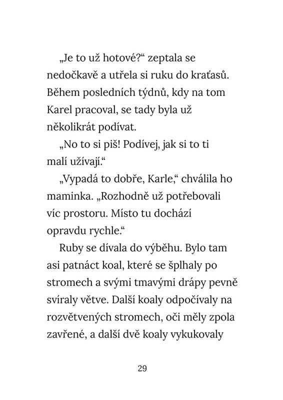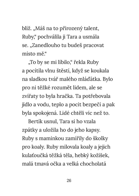 Ruby miluje kreslení, zvířata a zajímavé informace. Nemá ráda hlasité zvuky, nepříjemné pachy, hrudky v bramborové kaši. Ze všeho nejvíc ale nesnáší změnu, a to jakoukoliv. Když se jednoho dne na jejich zahradě objeví malé osiřelé mládě koaly, Ruby se rozhodne, že se stane jeho pečovatelkou. A to je už pořádná změna!