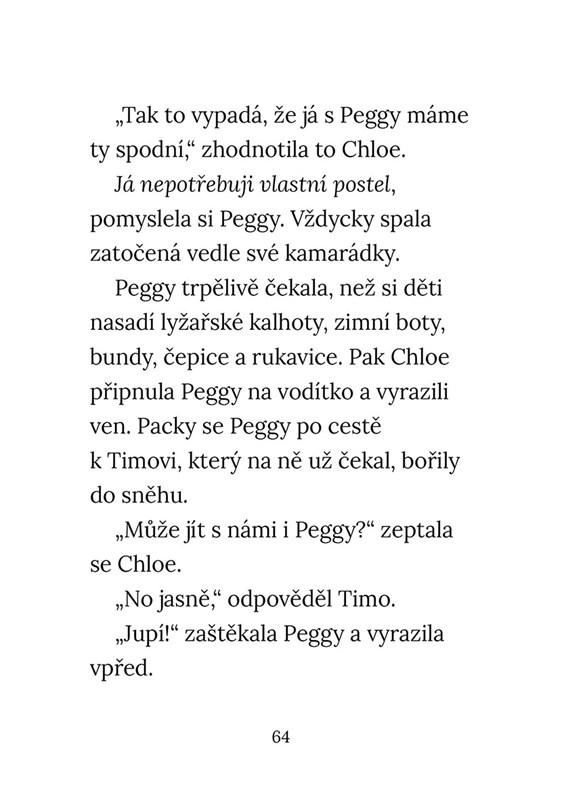 Rodina Peggy vyhrála v soutěži vánoční výlet do dalekého Laponska. Chloe se nemůže dočkat a malý mopsík s ní. Všichni se těší na bruslení, polární záři i návštěvu Santovy dílny. Bohužel tatínek s nimi jet nemůže, protože má moc práce. Celá rodina je z toho hodně smutná. Ovšem nebyla by to Peggy, kdyby neměla v pacičkách nějaký dobrý plán! Stačí přece najít Santu a poprosit o splnění vánočního přání…