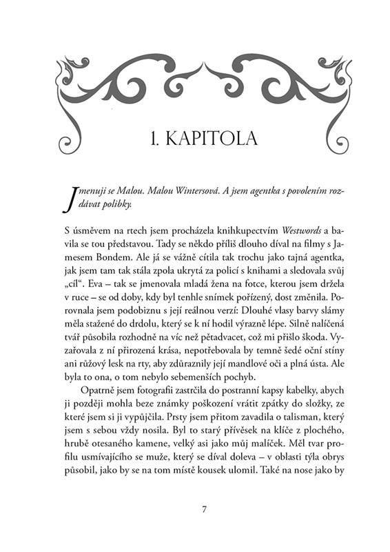 Malou je antimúza. Jako potomek skutečné ženy a fiktivního knižního hrdiny dostala do vínku neobvyklou schopnost: polibkem dokáže spisovatelům krást nápady. Svůj úděl se snaží využít pro dobro literatury, upadne však v podezření, že několik autorů připravila kromě nápadů i o život. Teď musí své jméno očistit a odhalit skutečného vraha. Proč se jí ale rozbuší srdce pokaždé, když se objeví ten protivný mladý detektiv ze Scotland Yardu? A nespravil by to taky polibek?