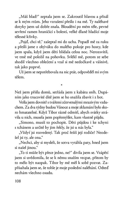 Simona před kolegyní z kanceláře tají, že udržuje vztah se svým šéfem. Zatímco v pracovní době od sebe mají odstup, v soukromí si jsou tak blízcí, že Simona dělá náhradní matku jeho dvěma dětem. Tibora totiž opustila manželka, která o ně nejeví zájem. Každý domov má však svou odvrácenou stranu. Simona o tom ví své. Přítomnost matčina nového partnera pro ni byla tak nesnesitelná, že se hned po střední škole osamostatnila a přetrhala rodinné vztahy. Ve vzpomínkách se vrací do období, kdy prožívala krušné chvíle. Problémy ji neopouštějí ani v přítomnosti, kdy se kolem jejího partnera dějí podezřelé věci. Opravdu ji Tibor miluje, nebo se jen snaží zaplnit prázdné místo ve svém životě? Jak už se Simona přesvědčila několikrát, všechno trvá jen dočasně a jen ona sama může ovlivnit svoji budoucnost.