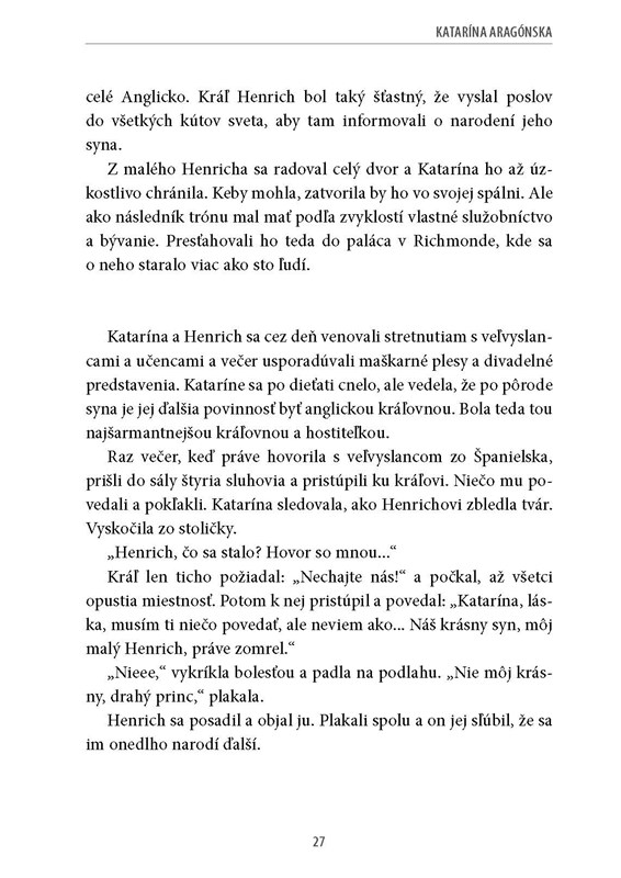 Prečítajte si v slovenskej a anglickej verzii príbehy šiestich manželiek Henricha VIII., ktoré sa dostali až na vrchol spoločenského rebríčka, aby napokon neraz padli až na samé dno a čelili hnevu čoraz paranoidnejšieho kráľa. Ich životy boli popretkávané snahou získať si priazeň svojho manžela túžiaceho po mužskom dedičovi a nemilosrdnými intrigami odohrávajúcimi sa na kráľovskom dvore v tudorovskom Anglicku.