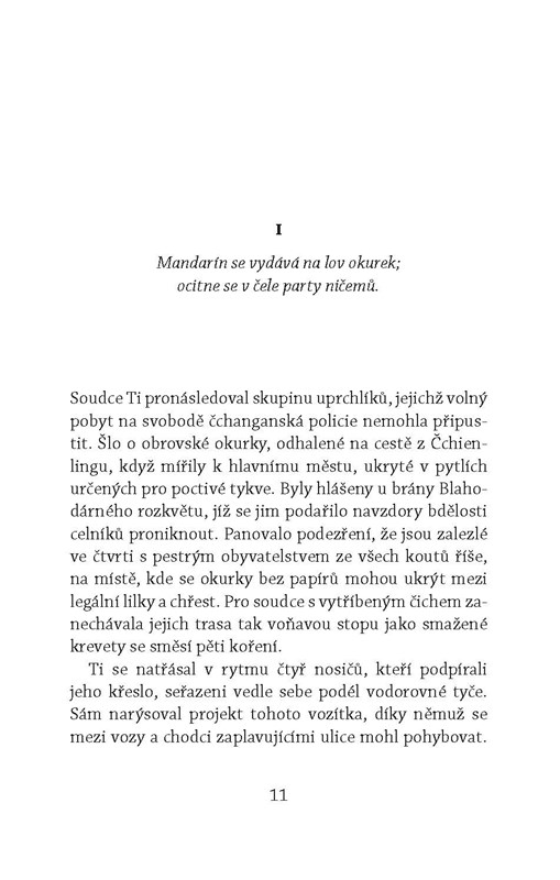 Věrný své vášni pro kriminální případy nás soudce Ti provádí zákruty čínské kultury. Kdo jiný než on by byl s to čelit takovému sledu úskočných vražd, zhroucených mostů a úmyslně poškozených hrází a neztratit přitom nic ze svého důvtipu a klidu?