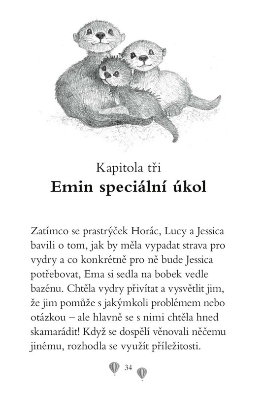 Do Záchranné zoo strýčka Horáce přivezli tři nádherná vydří mláďata. Není se tedy čemu divit, když dvě vyberou, aby účinkovala při komentovaném krmení a dovádění ve vydřím výběhu. Jejich sestřičce Saše je líto, že ona součástí vystoupení není, a Ema by jí ráda dodala kuráž. Dokáže nesmělou vydru přesvědčit, aby se nevzdávala a ukázala ostatním, že i na ní je co obdivovat?