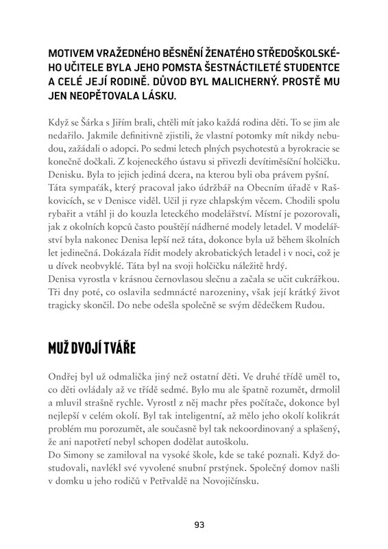 Kriminalistická historie ostravského regionu je výjimečně bohatá na mrazivé události. Vstupte do světa skutečných novodobých i historických případů, které otřásly ostravskou veřejností! Čekají na vás nejděsivější vraždy, zajímavosti ze soudních síní i různé kuriozity z podsvětí. Často vás překvapí neuvěřitelné motivy zlocinu To vše v doprovodu autentických černobílých fotografií. Pokud máte pro strach uděláno, vydejte se na cestu do temnot lidské duše. Ale pozor, tahle stezka vede hlouběji, než si umíte představit.