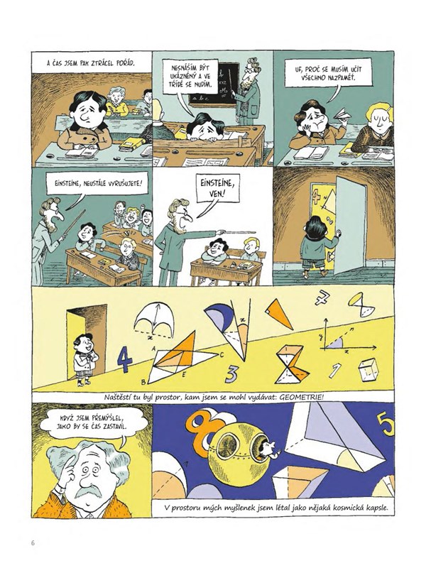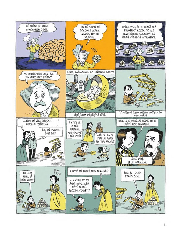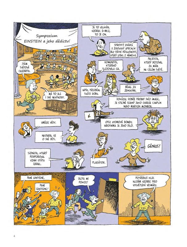 Vzdělávací komiks, určený dětem a dospívající mládeži, vypráví o životě a objevech Alberta Einsteina a zároveň graficky znázorňuje v pochopitelné formě jeho hlavní vědecké teorie na poli fyziky, které radikálně změnily naše životy. V prvním komiksovém životopisu tohoto génia 20. století sledujeme fyzika od jeho narození až do konce života. Objevíme nezkrotné dítě, které se zajímalo o vědu a geometrii, později studenta polytechnické školy v Curychu, který se setkává s velkými vědci své doby, a nakonec úspěšného vědce, jehož kariéra byla korunována vytvořením speciální a poté obecné teorie relativity. Poznáme ale i Alberta Einsteina vyděšeného z vojenského využití svého vědeckého výzkumu a zavaleného rodinným životem. Perfektně napsaný komiks, který zachycuje Einsteinův život v celé jeho složitosti.