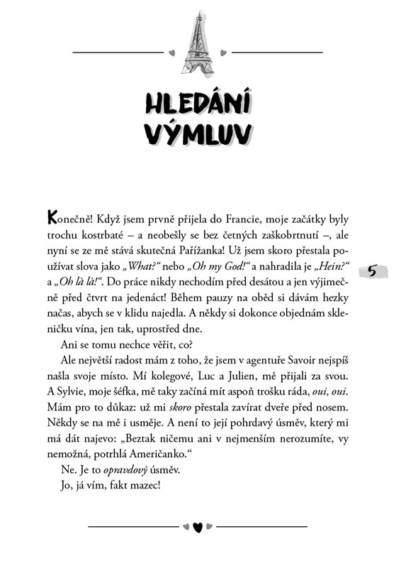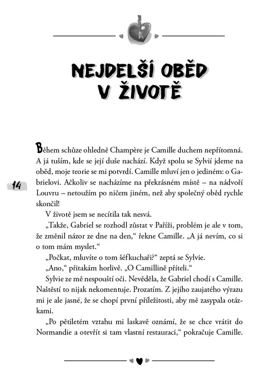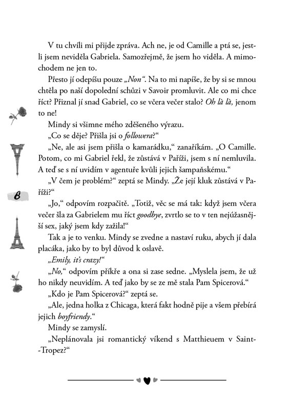 Po poněkud komplikovaném začátku a řadě omylů si začínám život v Paříži opravdu užívat. Kolegové v Savoiru mě přijali mezi sebe a šéfová mi už skoro nebouchá dveřmi před nosem. Když se procházím po své čtvrti, cítím se jako doma. A od doby, co se do mého malého bytečku nastěhovala moje kamarádka Mindy, je to ještě lepší. Má to jen jeden malý háček. Malý zádrhel jménem Gabriel, o kterém se mnou chce Camille naléhavě mluvit. Přiznal jí Gabriel, co se mezi námi stalo? Ach bože, cokoli, jen ne tohle!