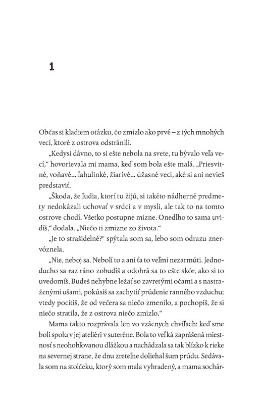 Na bezmennom ostrove pri bezmennom pobreží miznú objekty: najskôr klobúky, potom stuhy, vtáky, ruže. Väčšina obyvateľov ostrova na stratené predmety okamžite zabúda, akoby im ktosi vygumoval spomienky. Lenže tí, čo neprišli o schopnosť pamätať si, žijú v ustavičnom strachu. Pátra po nich pamäťová polícia, ktorá má za úlohu zabezpečiť, aby to, čo zmizlo, upadlo navždy do zabudnutia.
