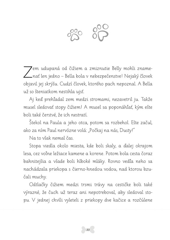 Paul s Dustym sú zaneprázdnení hľadaním Alexinej fenky Belly, ktorá utiekla a zatiaľ sa nevrátila. Situácia je vážna, pretože Belle sa majú každú chvíľu narodiť šteniatka. Paul s Dustym pátrajú v neďalekých močiaroch, kde na nich striehnu nebezpečenstvá – starý čudný muž s puškou, ktorý tu žije, banda výtržníkov, ktorí vystrájajú kadejaké darebáctva, aj nečakane silná búrka. Nájdu Bellu a dostanú sa bezpečne z močiarov? Dúfajme, že Dusty opäť zabráni najhoršiemu!