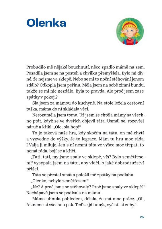 Olenka je ukrajinská prvňačka, která se těší do školy na svou paní učitelku. Ráno, které přijde, je však úplně jiné, než si představovala. Začala válka. Olenka se sestrou Valjou a mámou musí utéct do bezpečí. Cesta do jiné země však není jednoduchá. Ještě štěstí, že je doprovází pes Dobro.