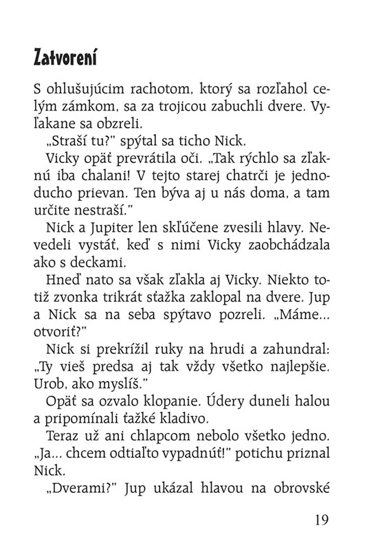 Ten zámok je prekliaty! Iba naša dobre známa trojica detektívov z Klubu záhad si trúfne objasniť tajomné udalosti, ktoré sa v ňom dejú. Jupiter, Vicky a Nick narazia na dôkazy, že pred sto rokmi došlo na zámku Westfinster k strašnému zločinu. Kto na zámok uvalil kliatbu a čo máta v jeho múroch?