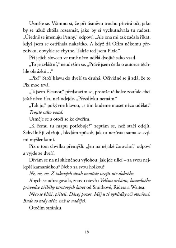 Sedmnáctiletá Eleanor je tím posledním člověkem v Salemu, který by věřil na kouzla a čáry. Přišla o svou nejlepší kamarádku a první lásku, spolužáci se jí vyhýbají a ona přežívá ze dne na den sama a se zlomeným srdcem. Může ručně vyrobený balíček tarotových karet změnit její život? Nebo tajemná dívka Pix s čarodějnickým nadáním? Magie si cynickou Eleanor nakonec najde a ona se nechá vtáhnout do společenství mladých čarodějek.