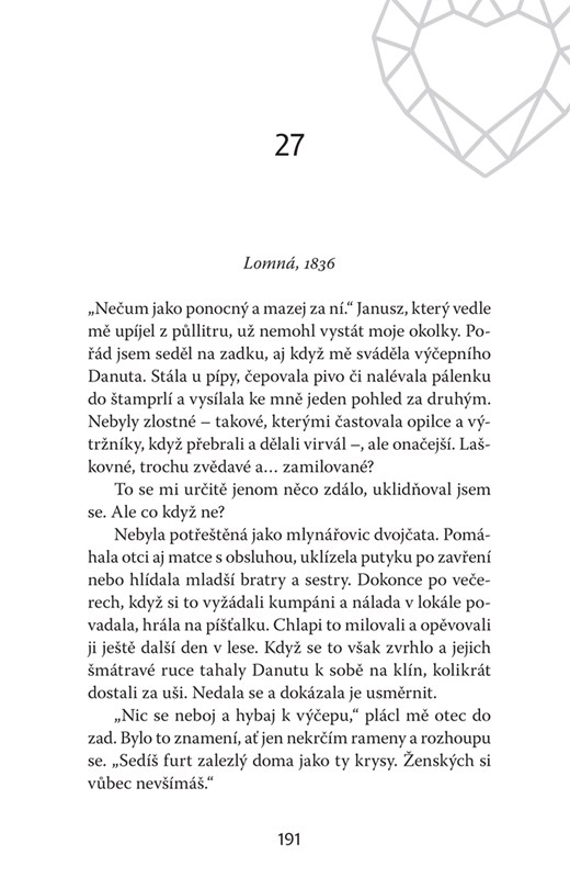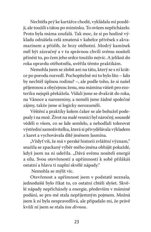 Jasmína žije na Jablunkovsku s ezotericky zaměřenou matkou a marně hledá práci, která by změnila její rutinu. O lásce si v této situaci může nechat jen zdát. Ledaže by se stal zázrak. V její blízkosti se najednou objeví dva muži – nový soused Oskar a Joachim, který o sobě tvrdí, že pochází z roku 1836. Zatímco první z nich jí přijde příliš sebevědomý, druhý je plný pokory a zasvěcuje ji do historie dřevařské kolonie v Lomné. Ta je pro Jasmínu zajímavější než realita, v niž bojuje s vážnou nemocí a musí se vyrovnat se ztrátou blízké osoby. Jasmína ale nemůže věčně snít, po návštěvě Itálie se musí k osudu postavit čelem a odhalit tajemství akvamarínu, který ji provází celý život.