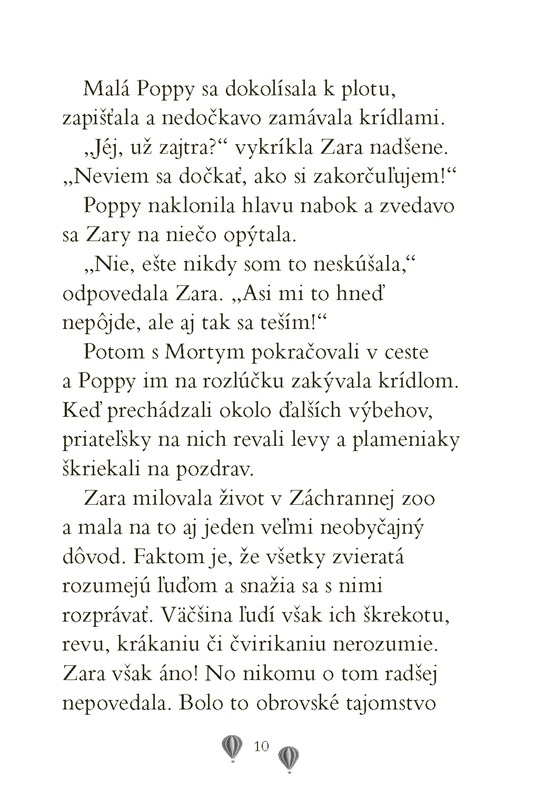 Zara miluje život v Záchrannej zoo, pretože sa v nej stále deje niečo vzrušujúce. Navyše má jedno úžasné tajomstvo… dokáže sa rozprávať so zvieratami!