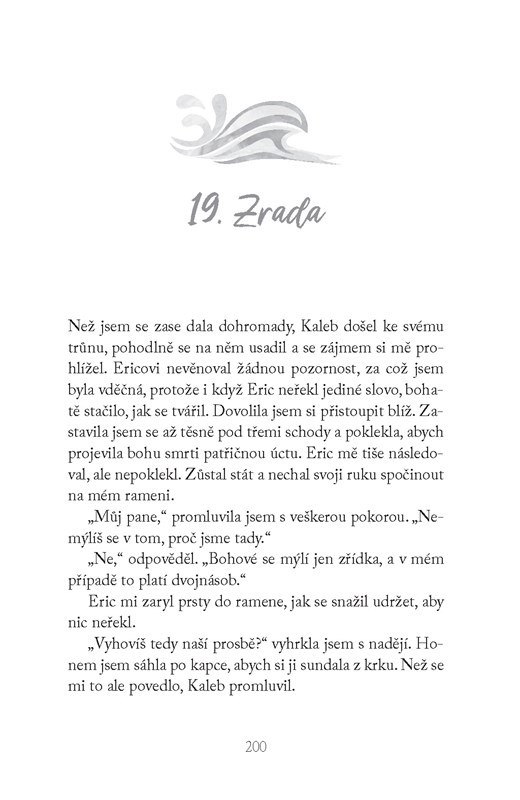 Leah a Olivie jsou nerozlučné kamarádky už od útlého dětství. Leah se jako malá hodně přátelila i s Oliviiným dvojčetem Ericem, ale to už nejspíš odnesl čas. Všichni tři patří mezi strážce živlů, které stvořili samotní bohové, aby udržovali rovnováhu mezi přírodními silami, a kteří už dlouhá a dlouhá léta žijí ve vyhnanství. Leah s Olivií na rozdíl od Erica nezpochybňují trest, jejž bozi uvalili na jejich dávné předky, a nemají potřebu zkoušet překonat hranici, která odděluje jejich vesnici od okolního světa. Jenže pak se stane něco strašlivého, událost, která Leah otřese natolik, že možný hněv bohů přestává být tou největší hrozbou.
