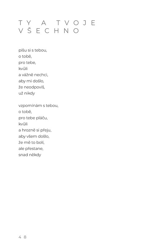 Sbírka moderních veršů plná primitivních lásek, zmařených přátelství, nostalgických slz i jiných důkazů, že poezie žije.
