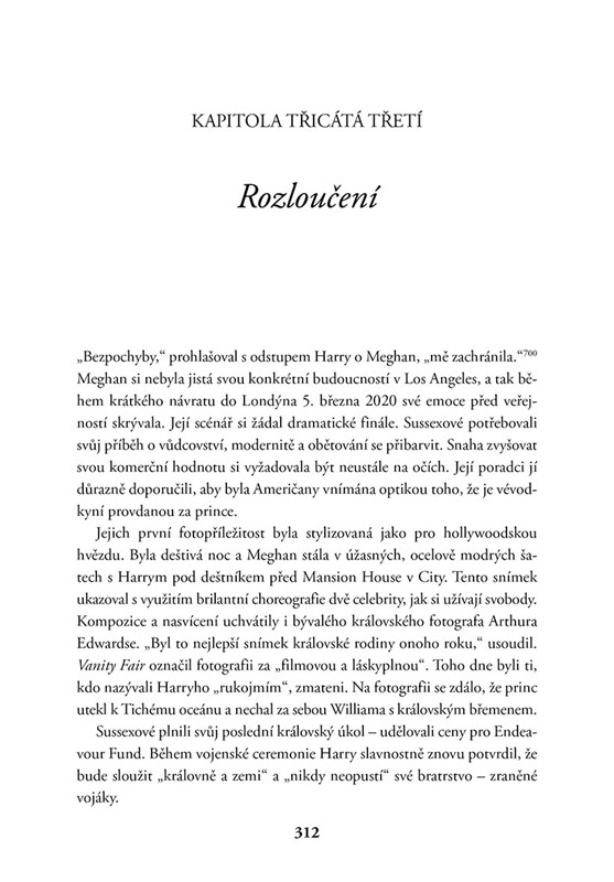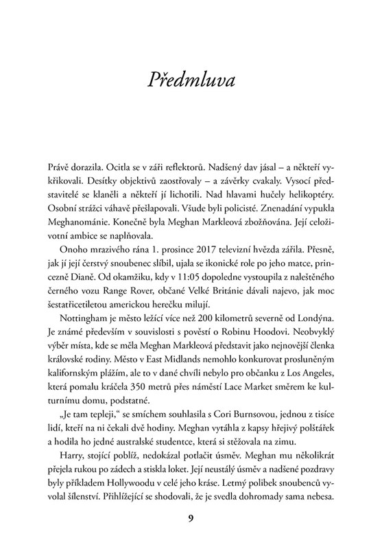Svatba Harryho a Meghan měla být pro Windsory začátkem nové éry. Během jednoho bouřlivého roku se však sen proměnil v noční můru. Přední britský investigativec zachycuje osudy Meghan Markle jako cestu k dobrému sňatku. Do detailu popisuje její dětství, hereckou kariéru, seznámení s Harrym, královskou svatbu, interview pro Oprah i stav studené války v královské rodině. Výsledkem je strhující mozaika lásky, zrady, tajemství a pomsty.