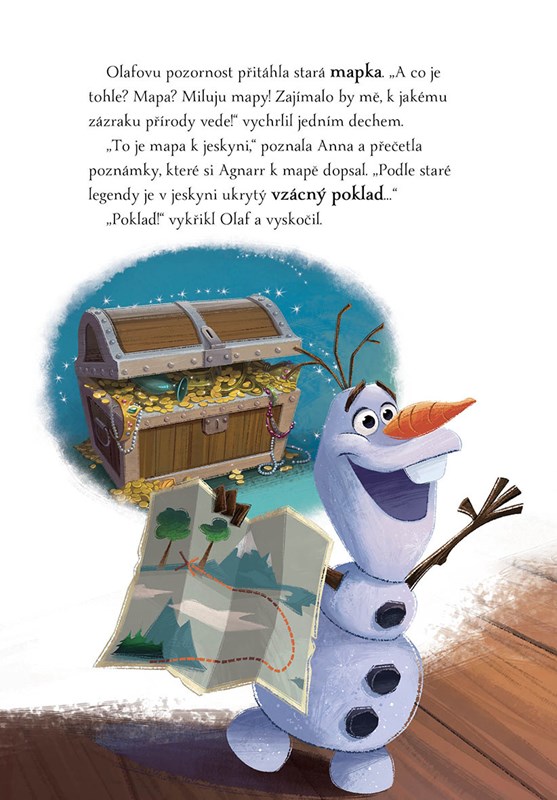 Je tu Olaf se čtyřmi novými pohádkami! V prvním příběhu se dozvíte, jak to dopadlo s nalezeným vajíčkem. Ve druhém s Annou a Elsou pomůžete malému Erikovi hledat ztracenou hračku, ve třetím na vás čeká nespokojený a unavený zemní obr a v posledním vyprávění zavítáte do hor a zkusíte podle staré mapky vypátrat ukrytý poklad krále Agnarra!