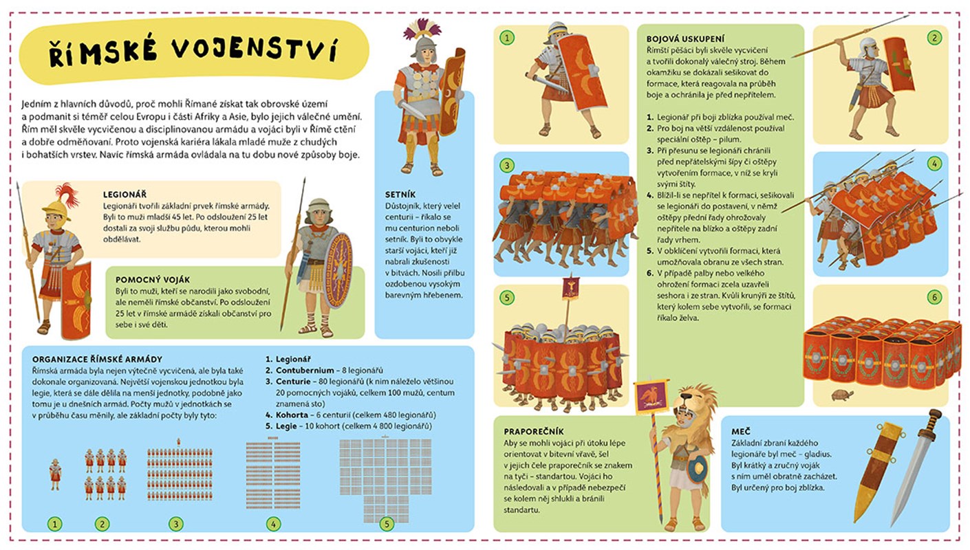 Všechny cesty vedou do Říma, praví známe rčení, které obrazně vyjadřuje, jak důležitá civilizace vznikla před téměř 3000 lety. Když byly položeny základy starověkého města Řím, nikdo netušil, že zároveň vznikla jedna z nedůležitějších říší lidské historie. Říše, která se v dobách své největší slávy rozprostírala na území velké části Evropy, části Británie, kolem celého Středozemního moře a v zemích u Černého moře. Římská říše inspirovala celý svět, obzvláště v oblasti umění, architektury, jazyka, politiky a obchodu, ale i vojenství. Pojď se spolu s námi zábavnou formou seznámit s Římem a s jednou z nejzajímavějších civilizací starověku.