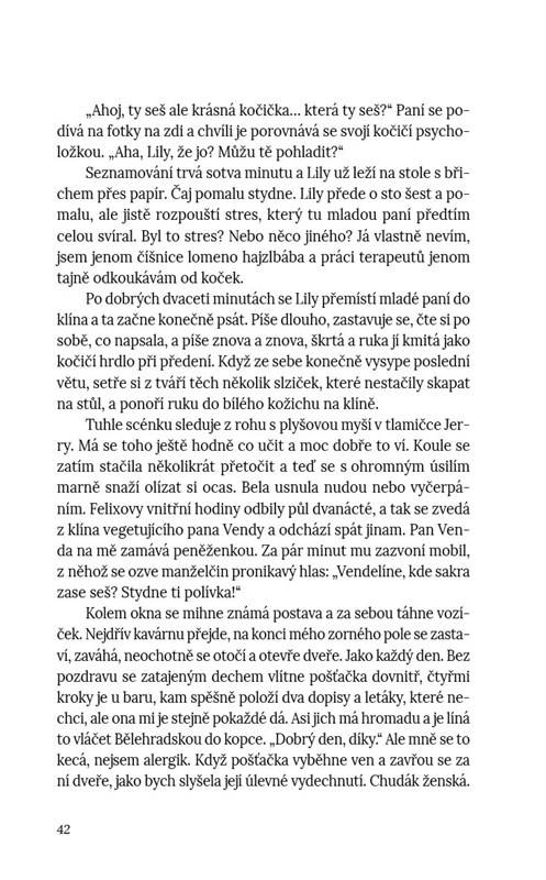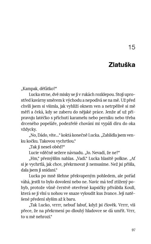 Co s tím, když rozumíte víc zvířatům než lidem? Například Dáda založila malou kočičí kavárnu a schovaná za barem si užívá svéhlavé chlupaté svěřence. Jenže ouha, i do kočičí kavárny sem tam zabloudí dvounožec, a to je hned oheň na kávovaru. Ale možná že to nakonec nebude až taková katastrofa. A opravdu jenom možná, spíš krajně nepravděpodobně, se v téhle malé kavárničce zrodí nová, neočekávaná pouta.