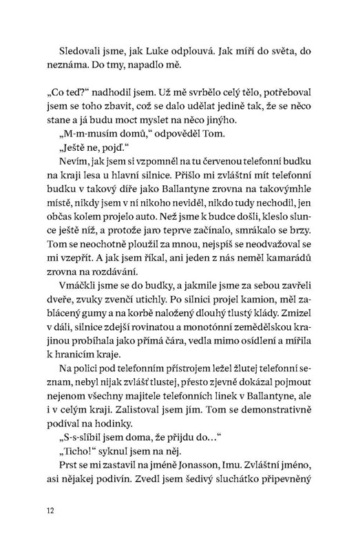 Čtrnáctiletému Richardovi, který se po tragických událostech přistěhoval k tetě a strýci do městečka Ballantyne, se smůla lepí na paty. Když přemluví spolužáka Toma, aby z telefonní budky někomu náhodně zavolal a vystřelil si z něj, vypadá to jako nevinná lumpárna. Jenže sluchátko vzápětí Toma sežere. Richardovi nikdo nevěří a po zmizení dalšího spolužáka ho čeká pobyt v nápravném zařízení. Jak dokáže, co se doopravdy stalo? A není náhodou všechno úplně jinak?