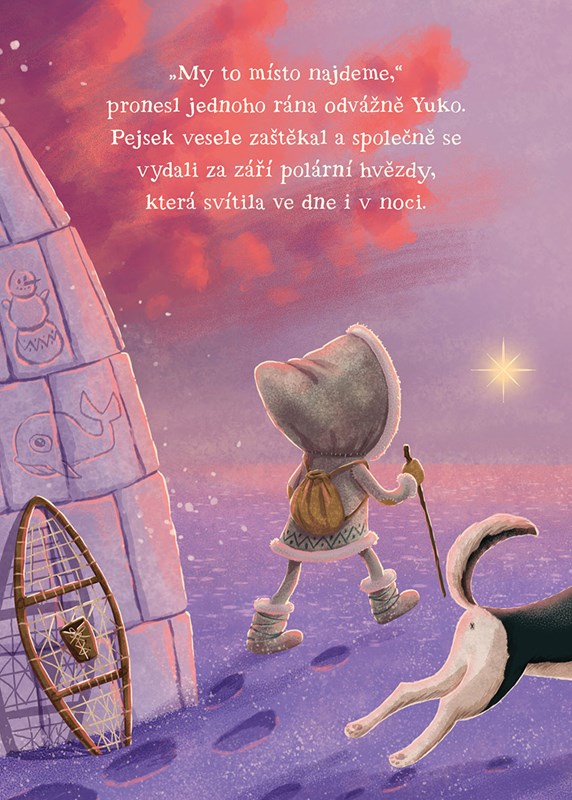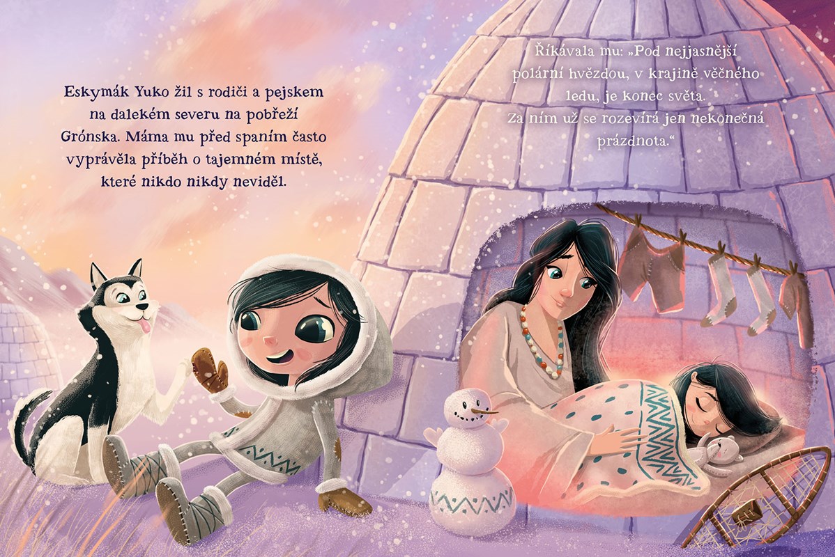 Malému Eskymáčkovi Yukovi maminka večer vypráví příběhy o místě, kde končí svět. Jenomže pižmoň, sob, a dokonce ani polární liška o něm nic nevědí. Možná mu poradí veliká bílá medvědice. Povede se nakonec Yukovi najít konec světa?