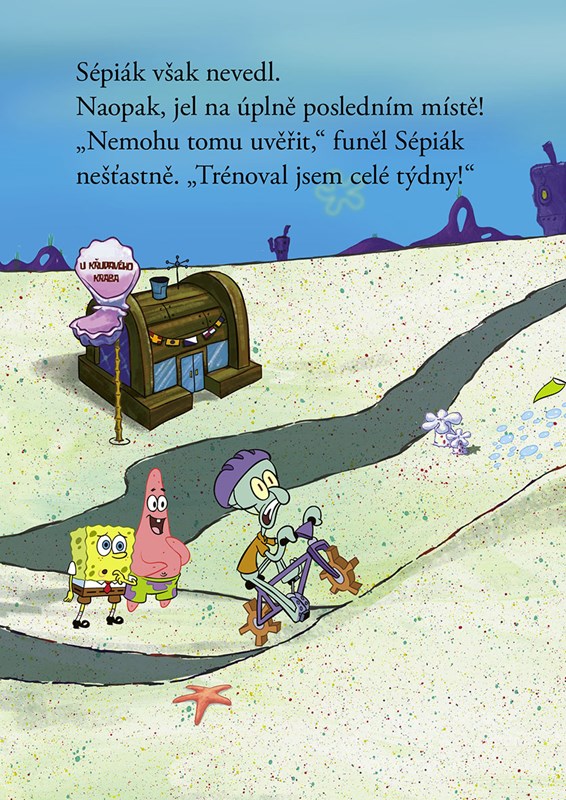 Sépiák se přihlásí do závodu Zátiší Bikin, a když vystartuje, SpongeBob s Patrikem si usmyslí, že mu pomohou vyhrát. Ale místo pomoci mu spíš škodí a Sépiák jede celou dobu na posledním místě! Podaří se mu setřást SpongeBoba a Patrika a dohonit ostatní?