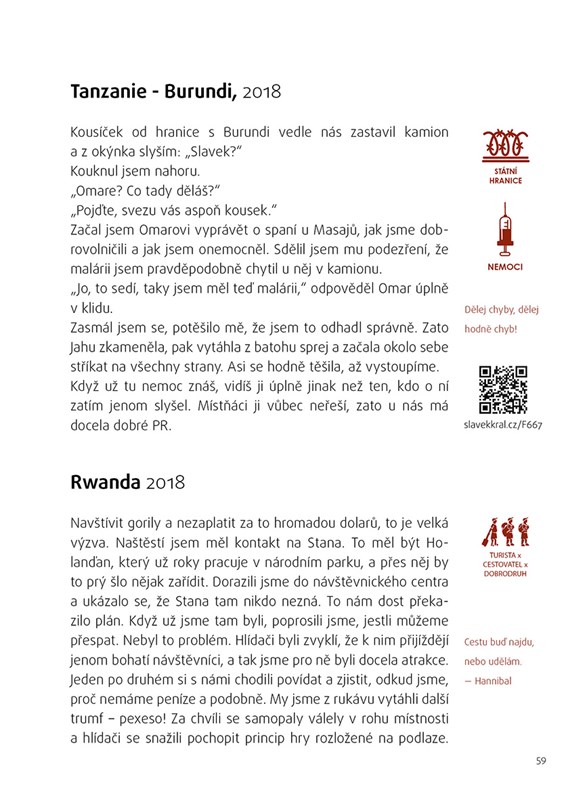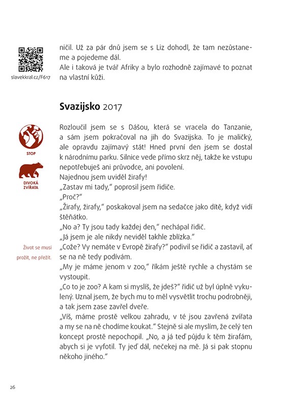 Slávek Král cestuje už osm let, dal dvě cesty kolem světa stopem a na každém obydleném kontinentu strávil minimálně půl roku. Peněz moc nepotřebuje. Stopuje, kempuje a často dobrovolničí. Jak sám říká: „Nastopoval jsem přes 250 tisíc kilometrů v 84 zemích světa a 21 státech USA, a lidi mi pořád říkají, že je to nebezpečné. Podle mě je svět bezpečné místo pro život a rozhodně to není takové, jak nám cpou v televizi.“