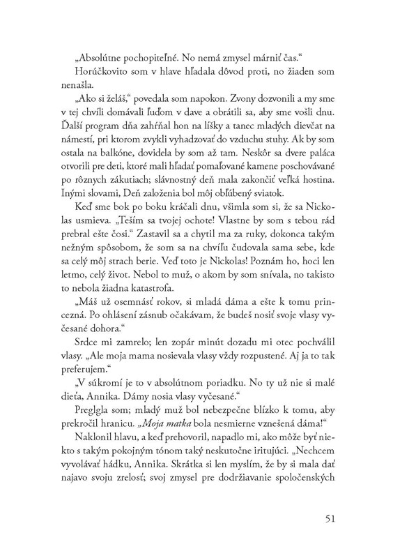Napriek tomu, že má kniha 500 strán a na pohľad je to poriadna bichľa, príbehom som skutočne veľmi rýchlo "prebehla". Ako už viem z predchádzajúcich autorkiných kníh, Kiera má skvelý, jednoduchý a pútavý štýl písania, a tak som cez množstvo krátkych kapitol doslova preletela. Samozrejme, samotný štýl by nestačil, ale aj príbeh ma musí zaujať, a to sa autorke opäť podarilo aj v tomto prípade. Mám veľmi rada tento typ romantických fantasy kníh, kde stávky nie sú príliš vysoké, príbehu nevládne len prehnane zložitá politika, zápletka je pomerne jednoduchá, nemusím byť počas čítania v strese z neustáleho napätia a rizika a výborne si pri knihe oddýchnem. Zároveň to však neznamená, že by autorka príbeh odflákla, to rozhodne nie.