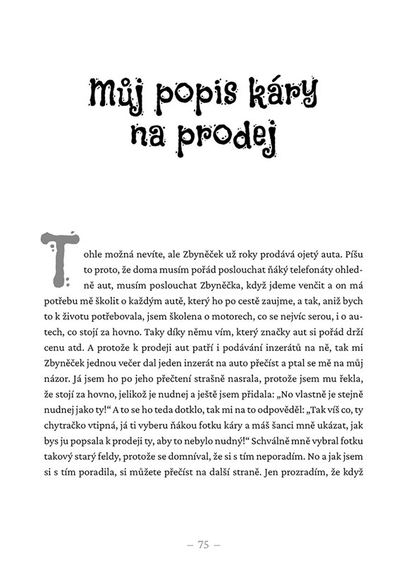 Je tady Troječka! Tentokrát se budete válet smíchy nejen u dalších bláznivých příhod z mýho dětství a dospělosti, od koní nebo se psem. Tentokrát pudete k zemi i při čtení mejch stížností a inzerátů, u kterých jsem já sama zdechala smíchy, když jsem je sepisovala. A bacha, pro milovníky černýho humoru jsem zařadila i jeden super čerňas. Prostě zaručené lék na blbó náladu a fedry všeho druhu. Zdar jak sviňa!