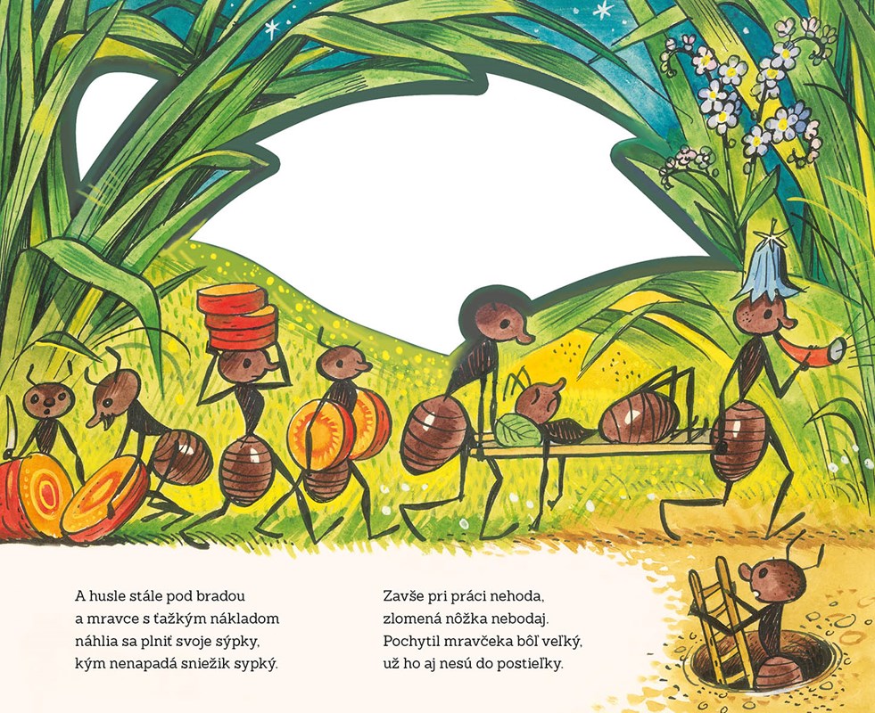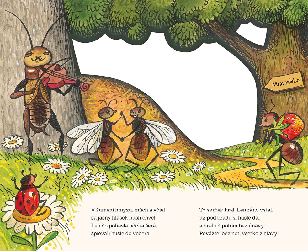 Svrček a mravce - to je dojemný príbeh o bezstarostnom svrčkovi a usilovných mravcoch, ktorý skvele prebásnila slovenská poetka Maša Haľamová. Krásny príbeh o tom, ako si kamaráti v núdzi pomáhajú, poznajú celé generácie slovenských detí a dodnes nestratilo nič zo svojho pôvabu ani závažného posolstva o priateľstve a zodpovednosti. Leporelo vyšlo už v desiatkach vydaní v mnohých jazykoch a teraz vám ho prinášame v slovenčine, maďarčine a dokonca v rusínčine.