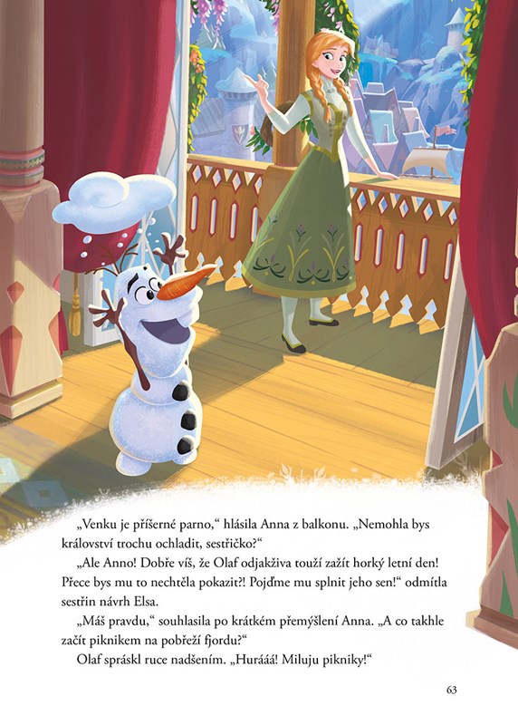 Vydejte se na ledově zábavnou pohádkovou výpravu! Oblíbení obyvatelé království Arendelle už se na vás těší. Dozvíte se, jak si sněhulák Olaf našel nového kamaráda, oslavíte kouzelný letní slunovrat, společně s Annou a Kristoffem pohlídáte trollí mimina, s Olafem prožijete vysněný letní den a vypátráte pozapomenuté vánoční tradice pro Annu a Elsu. Ledové království plné zázračných míst i bytostí vás zve na úžasné dobrodružství, které vás zahřeje u srdce. Užijte si ho do poslední sněhové vločky!