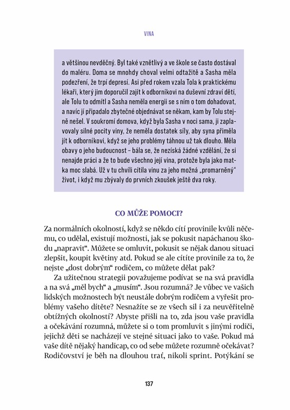 Tato knížka napsaná odbornicemi, které se tématu ve své vědecké i klinické praxi soustavně věnují, se ovšem nesoustředí na děti samotné, ale právě na jejich rodiče, kteří často kromě nedostatku sil řeší i pocity viny, zodpovědnosti a beznaděje a točí se v začarovaném kruhu.