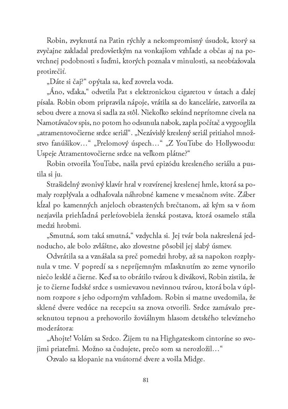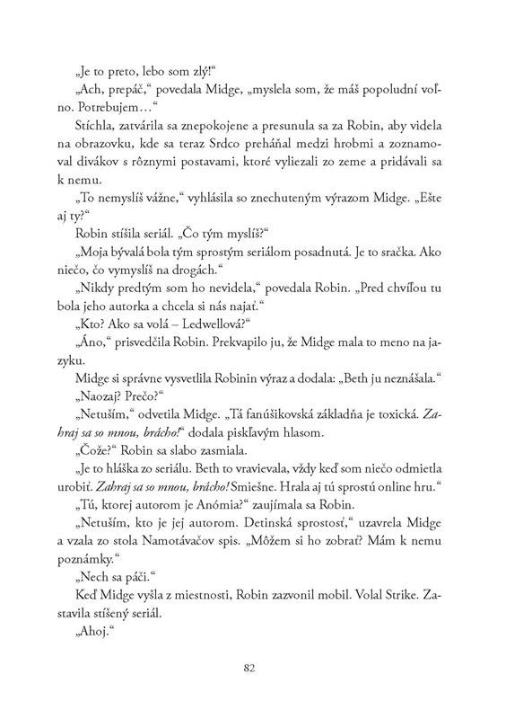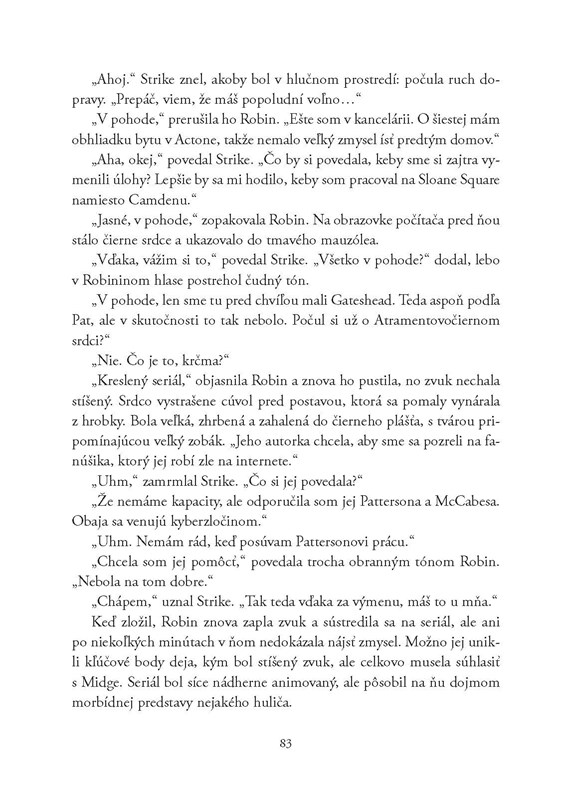 Keď do detektívnej kancelárie vkročí nešťastná Edie Ledwellová s prosbou o rozhovor s Robin Ellacottovou, súkromná detektívka nevie, čo si má o neupravenej mladej žene myslieť. Spoluautorku obľúbeného kresleného seriálu Atramentovočierne srdce totiž prenasleduje záhadný internetový používateľ, známy pod pseudonymom Anómia, a Edie zúfalo potrebuje odhaliť jeho či jej totožnosť.