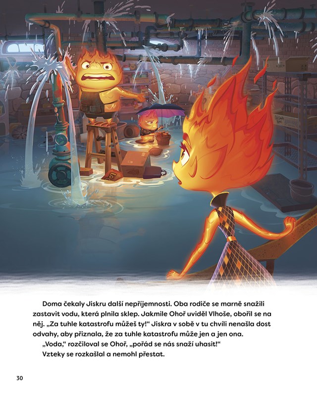Ve městě, kde spolu žijí obyvatelé ohně, vody, země a vzduchu, zjistí ohnivá mladá žena a muž, který plave s proudem, něco zásadního: kolik toho mají vlastně společného.