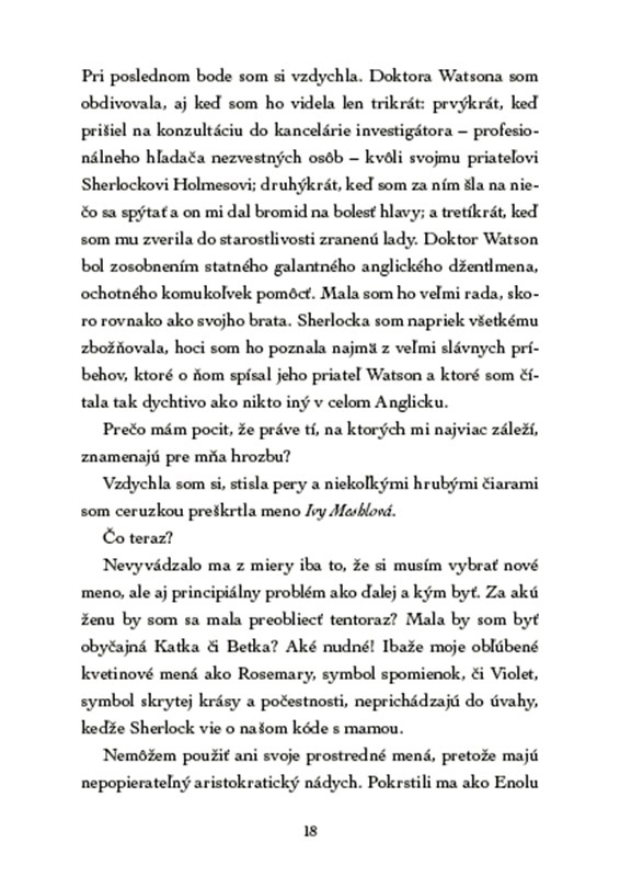 Aj Enola by tomu rada prišla na kĺb, i keď sa stále ukrýva pred svojimi bratmi a zapojenie do pátrania by pre ňu mohlo byť viac než riskantné. No len čo zistí, že do domu Watsonovcov bola doručená veľmi podivná a zlovestná kytica, hodí obavy za hlavu. Musí nájsť jej odosielateľa, a to čo najrýchlejšie! Iba ona totiž vie, že kytica obsahuje kvety, ktoré symbolizujú smrť!